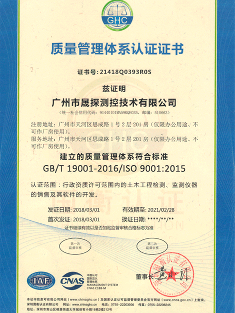 廣州市晟探測(cè)控技術(shù)有限公司是一家集開(kāi)發(fā)、銷(xiāo)售、服務(wù)為一體的高新技術(shù)企業(yè)、致力于工程質(zhì)量檢測(cè)與監(jiān)測(cè)精密傳感器、數(shù)據(jù)采集器、智能傳感器終端等產(chǎn)品的技術(shù)服務(wù)、產(chǎn)品推廣及應(yīng)用。公司的主要產(chǎn)品有:IN1000型無(wú)線藍(lán)牙活動(dòng)式測(cè)斜儀、VSR-1型振弦式數(shù)據(jù)采集儀、SWT-1型振弦式水位計(jì)等。公司側(cè)重技術(shù)的研究和儲(chǔ)備,保持高比例研發(fā)投...